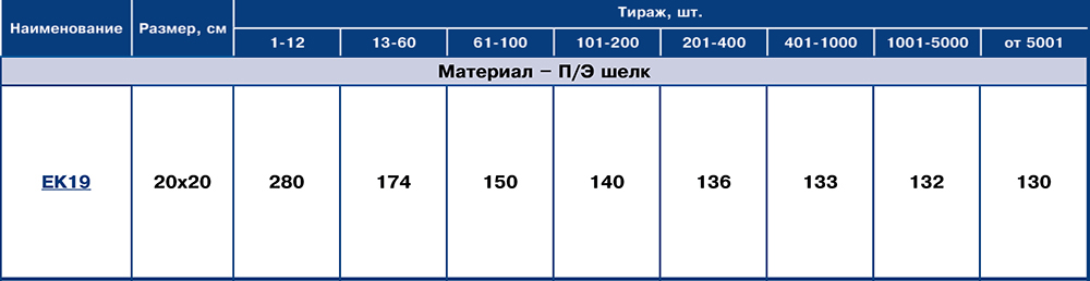 | EK19 | П/э шелк | Полное запечатывание с одной стороны | 20x20 | 0 руб. | ||