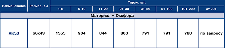 | AK53 | 65х42 | Полноцветное нанесение | Оксфорд | .CDR | 0 руб. | ||